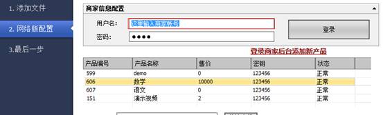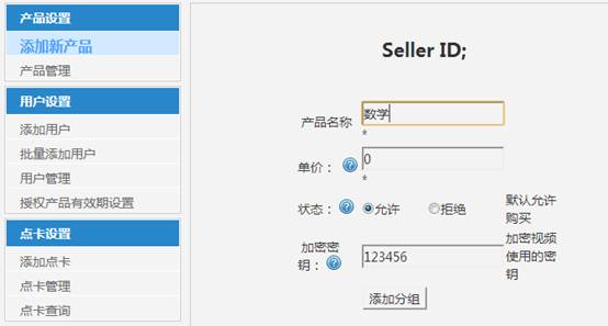 *產(chǎn)品分類是指, 比如可以把視頻劃分成 語文,數(shù)學(xué),英語 三門, 然后在后臺(tái)限制某個(gè)帳號(hào)只有播放 語文或數(shù)學(xué) 這個(gè)科目的權(quán)限。例如,用戶只購(gòu)買了語文這門課, 即使他下載了數(shù)學(xué)或英文的課程, 也無法播放,只能播放所購(gòu)買的課文課, 這樣有利于商家對(duì)不同產(chǎn)品分別收費(fèi)。我們只限制產(chǎn)品分類數(shù)量,并不限制視頻文件總數(shù)。