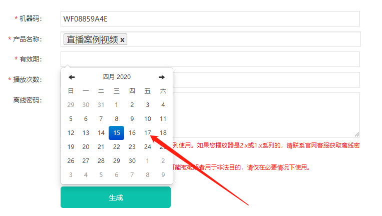 3、有效期:設(shè)置離線登錄對(duì)應(yīng)的觀看有效期。