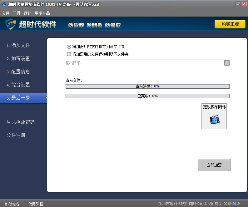 支持自定義加密密鑰,請務必記住,創建播放密碼時需要用到,否則無法生成正確的播放密碼。免費試用版不支持修改密鑰。