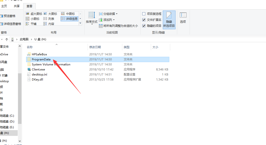 2、開啟后,加密U盤會多出來幾個文件夾,打開ProgramData文件夾
