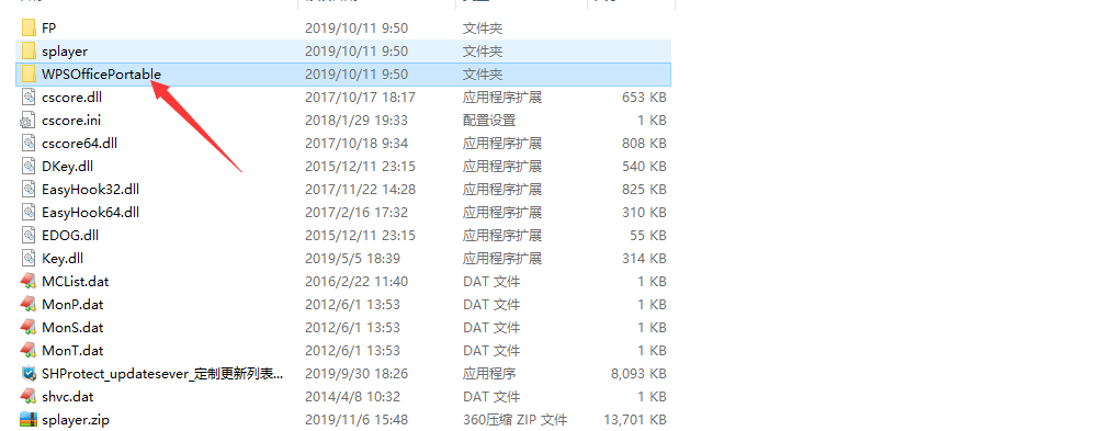 3、其中WPSOfficePortable文件夾就是系統自帶的內置WPS,只需要右鍵該文件夾重命名為:WPSOfficePortablewps既可